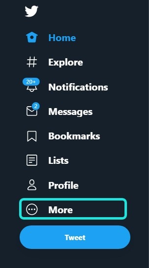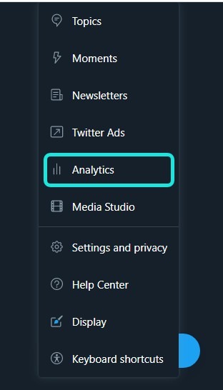 In the control panel of your Twitter web app, click on “More” and then select “Analytics” from the menu that opens.