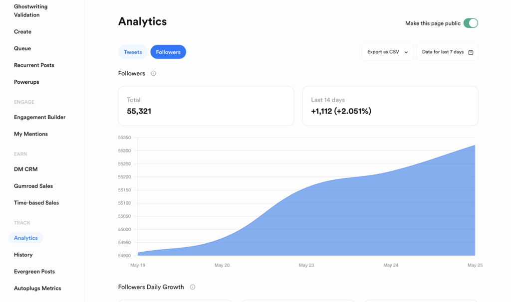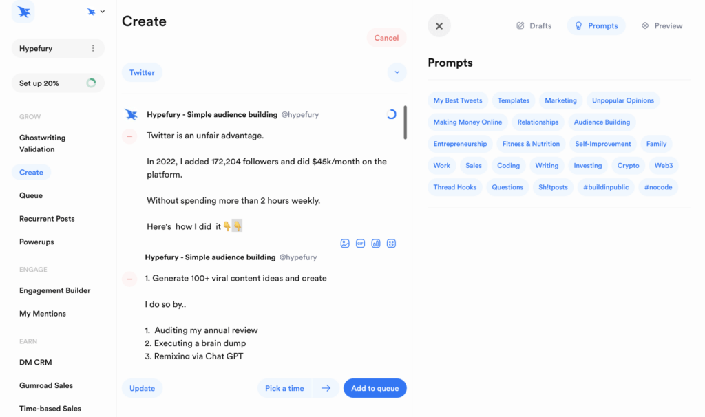 What gets measured gets managed. Hypefury has different insights that will help you grow your account