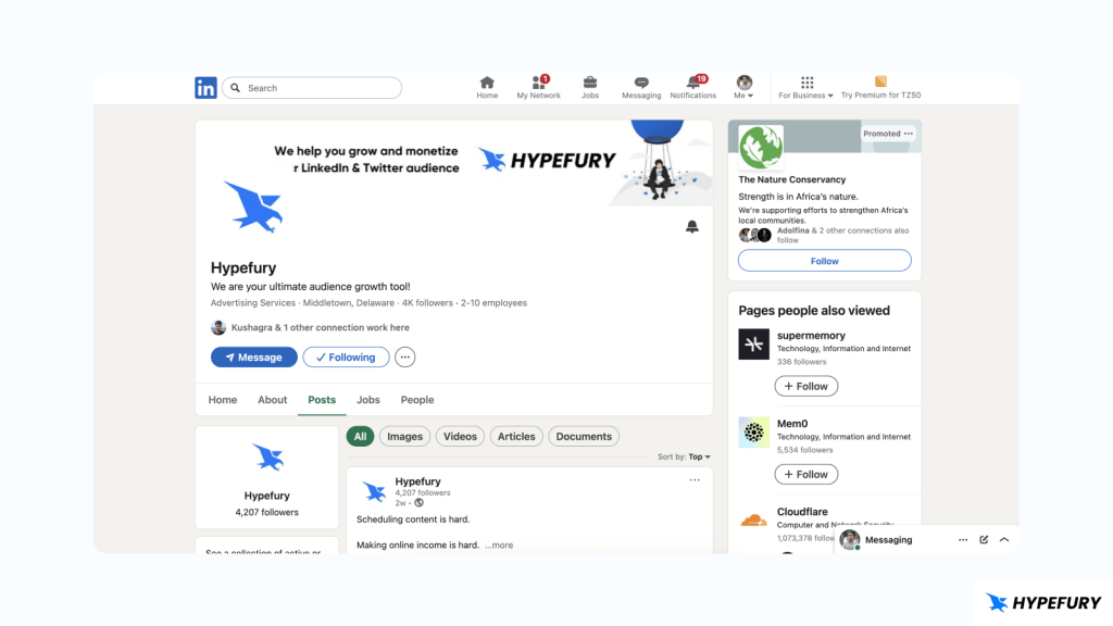 A LinkedIn company page is a type of LinkedIn page that explicitly represents a company or an organization on LinkedIn. It’s separate from the founder and its employees, and it serves as a digital presence for the business. A company page allows one to share the latest news, updates, events, and job openings.