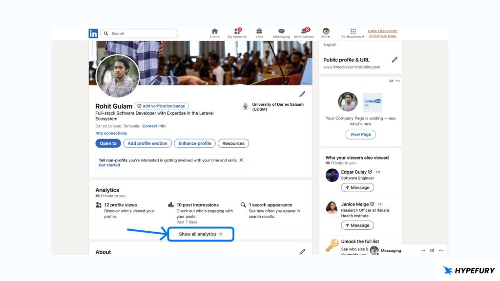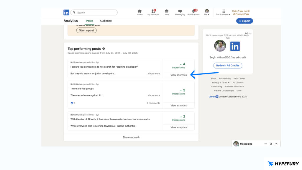 5. Click on ‘View analytics’ on the post that you want to view its impressions
