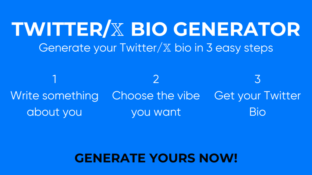 Use AI to generate your next Twitter/X bio in seconds. Just provide your description and choose your tone to get your Twitter/X bio